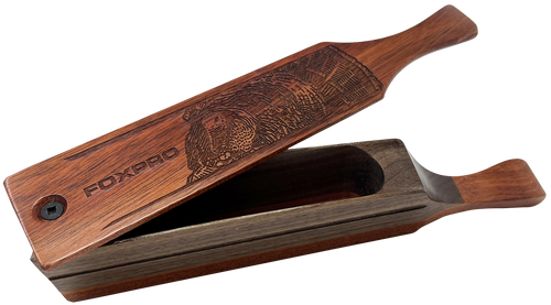 The Foxpro Popbox is a waterproof box call designed to produce authentic turkey sounds for hunting applications. This brown-colored call measures 12.8" x 5.0" x 2.7" and is built to withstand outdoor conditions. It is an essential accessory for turkey hunters seeking realistic vocalizations to attract game.