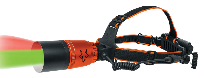 The Foxpro Quadlamp is a rechargeable Li-ion powered headlamp designed for hands-free lighting during outdoor activities. Features quad lamp configuration with dimensions of 10.8" L x 8.3" W x 3.3" H, weighing 1.10 lbs for comfortable extended wear.
