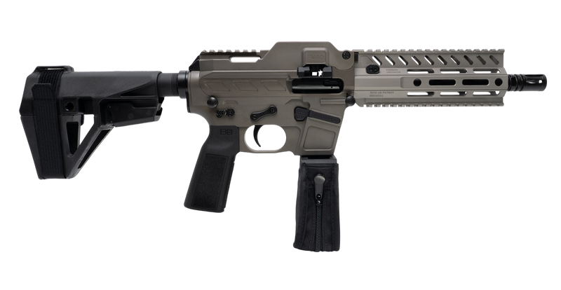 The Freedom Ordnance FM9D is a 9mm Luger semi-automatic pistol featuring an 8" black anodized barrel and flat dark earth anodized receiver with a 33+1 round capacity. This specialty firearm combines a compact profile with high-capacity magazine compatibility for defensive or recreational use.