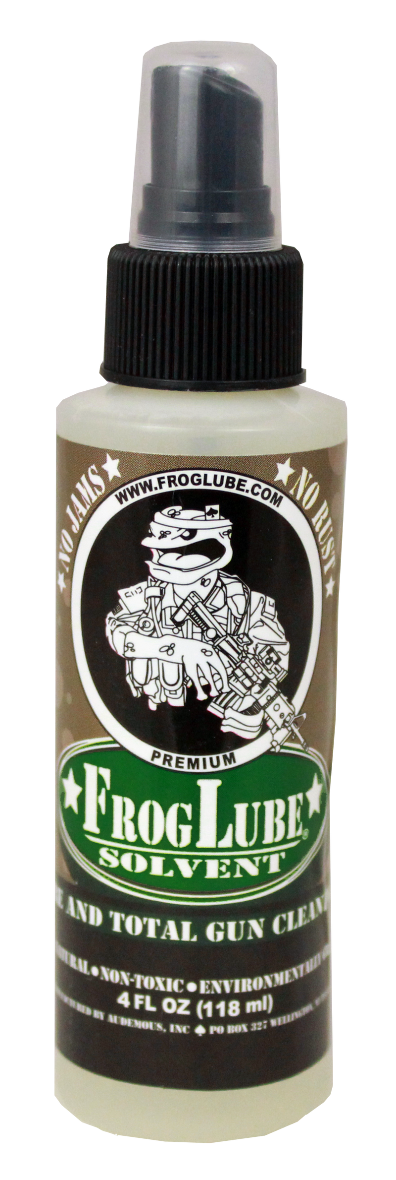 FrogLube Solvent Spray is a 4 oz aerosol cleaner designed to remove carbon buildup from firearms. This eco-friendly solvent is suitable for general firearm cleaning and maintenance. The product is hazardous and requires ground shipping only.