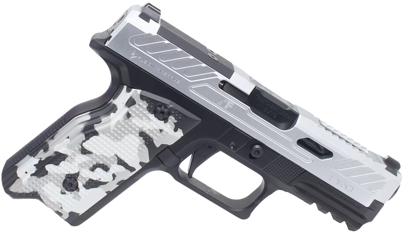 The Fusion XF Pro is a striker-fired semi-automatic pistol chambered in 9mm Luger with a 4" barrel and 15+1 round capacity. This all-metal handgun features an optic-ready slide (RMR compatible), fixed combat sights, and accepts Glock-compatible magazines. Built from bar-stock aluminum with a chrome and black Tenifer finish, it includes interchangeable grip panels and weighs 26.5 oz.