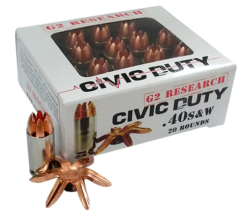 G2 Research Telos 357 Magnum ammunition features 105 grain lead-free projectiles loaded to 1300 fps, delivering 394 ft-lbs of energy. This California-certified nonlead ammunition uses boxer primers and reloadable brass cases, packaged 20 rounds per box.