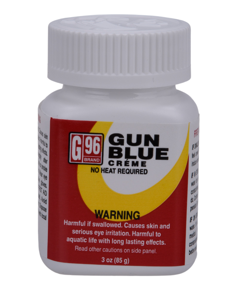 G96 Gun Blue Creme is a professional-grade refinishing product designed for re-bluing firearms with a mirror-like finish that blends seamlessly with original bluing without streaks or spots. The formula won't rub off or discolor and is highly recommended by gunsmiths for restoring worn or damaged blued finishes. Apply to cleaned and prepared metal surfaces for consistent, durable results.