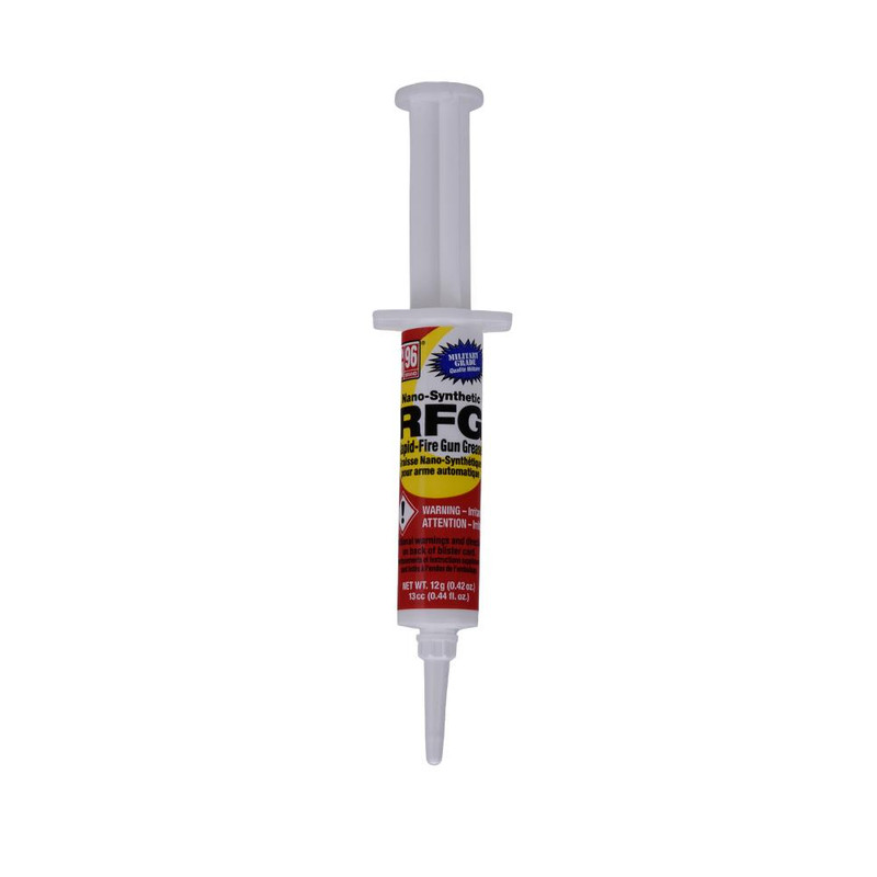 G96 Rapid-Fire Gun Grease is a military-grade lubricant formulated with nano synthetic technology for extreme lubrication and protection across all weather conditions. Designed for application on sliding surfaces, rails, trigger mechanisms, cam pins, choke tubes, and other areas requiring lubrication on small and large caliber weapons. The grease maintains a thin film where applied and is suitable for use on all firearms.