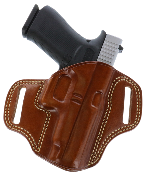 The Combat Master is a professional-grade belt holster hand-molded to fit specific handguns with excellent retention properties. This high-riding pancake-style design features belt slots on either side that pull the handgun tight to the body for effective concealment. Designed for right-hand draw with Colt 1911 3" firearms.
