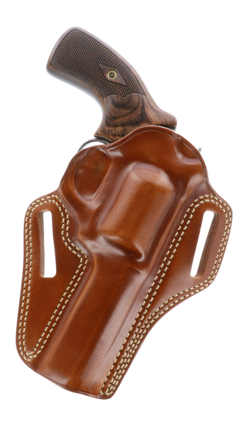 This ambidextrous speedloader carrier from Galco is specifically designed to fit King Cobra revolvers and features a 2.50" height profile. The tan leather construction provides durability and classic aesthetics for revolver shooters who need quick access to speedloaders.