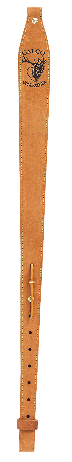 The Galco RS9 is a tapered leather rifle sling designed for rifles with sling swivels, featuring adjustable length from 29" to 42" overall. Constructed from tan leather with a 2" width, it provides a traditional sling option for hunters and shooters. The tapered design offers comfortable carrying and quick adjustment for different shooting positions.
