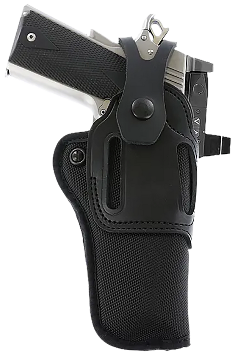 The Galco SA95RB is an ambidextrous crossdraw belt holster constructed from hybrid leather-synthetic material for durability and comfort. Designed for strongside carry, this holster features a crossdraw configuration and measures 12.0" in length with a 2.7" height, fitting standard to full-size handguns. The hybrid material construction provides a balance of retention and ease of draw suitable for both civilian and professional use.