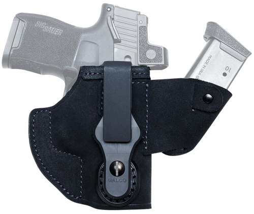 The Galco Walkabout 3.0 is an ambidextrous inside-the-waistband (IWB) holster constructed from premium black steerhide, designed to accommodate the Ruger LCP Max. This holster supports both strongside and crossdraw carry positions, making it versatile for different user preferences. Measuring 11.7" in length with a 2.2" height and 7.4" width, it offers a secure fit for compact carry.