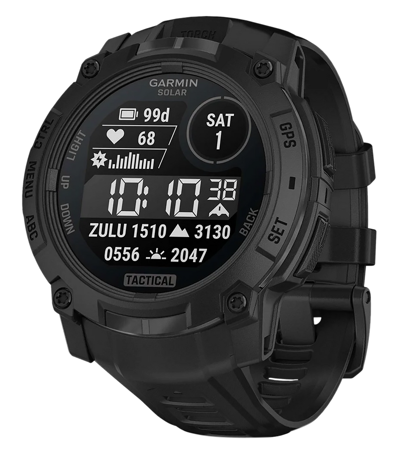 The Garmin Instinct 3 50mm Solar is a rugged tactical smartwatch designed for outdoor and military applications. Features solar charging capability to extend battery life in field conditions. Built with durable construction suitable for demanding environments.