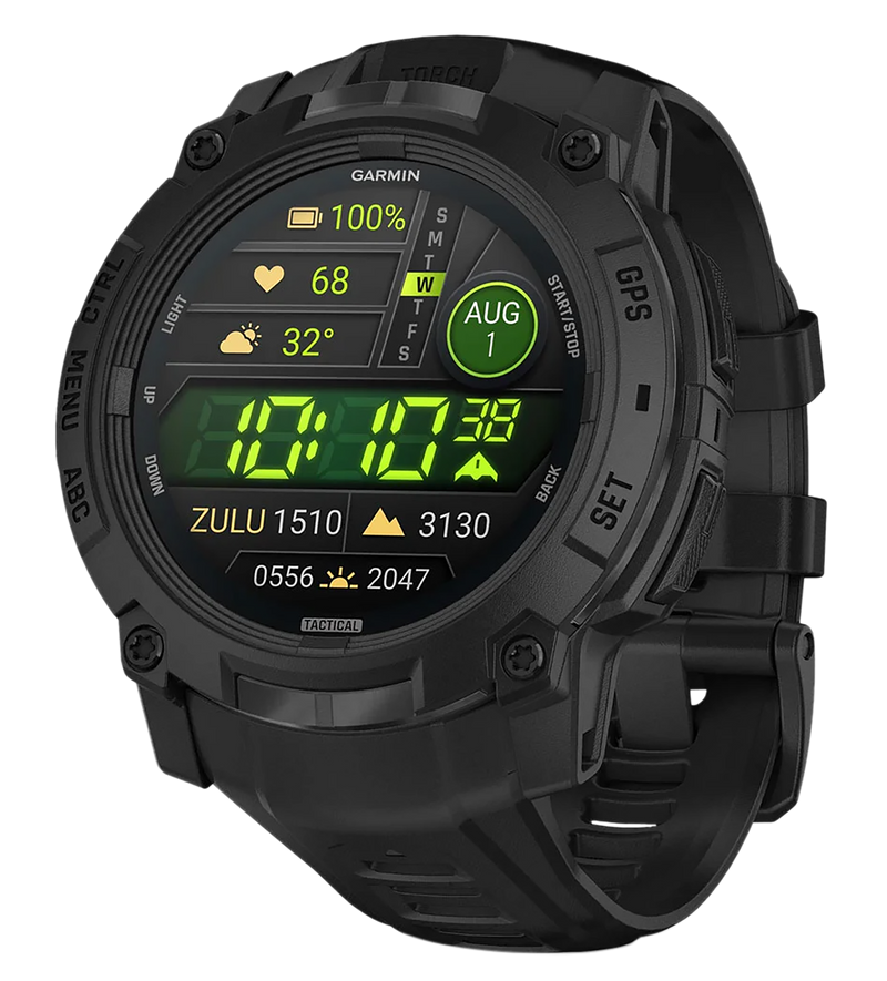 The Garmin Instinct 3 is a rugged 50mm AMOLED smartwatch designed for tactical and outdoor use. It features GPS navigation, mapping capabilities, and multi-band GNSS reception for reliable performance in remote environments. The watch is built for durability and extended field operations.