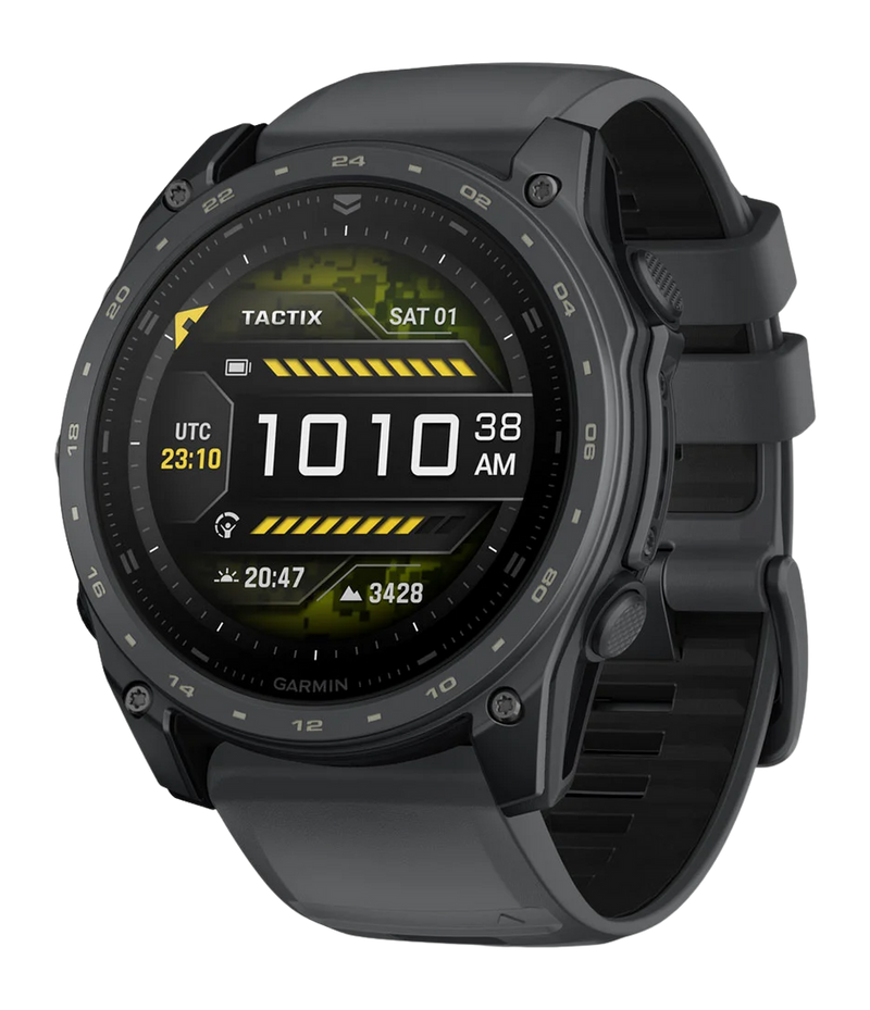 The Garmin Tactix 8 AMOLED is a tactical smartwatch featuring an AMOLED display with slate gray coloring. Designed for outdoor and tactical applications, this watch combines GPS navigation, mapping capabilities, and survival features in a rugged wearable format.