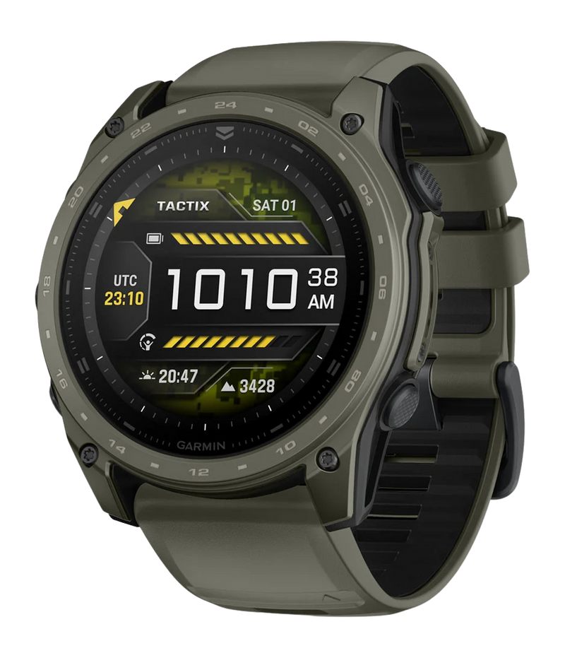 The Garmin Tactix 8 AMOLED is a tactical smartwatch featuring an AMOLED display, designed for outdoor and tactical applications. It offers rugged durability with tactical-focused features and navigation capabilities. This olive drab variant combines functionality with a professional appearance.