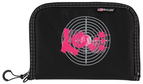 This compact handgun case measures 8.5" long and is designed specifically for pistols and handguns. Made with heavy-duty foam padding and a locking zipper, it features a Heather Gray fabric with gold foil contrast and heat-transferred logo for style at the range.
