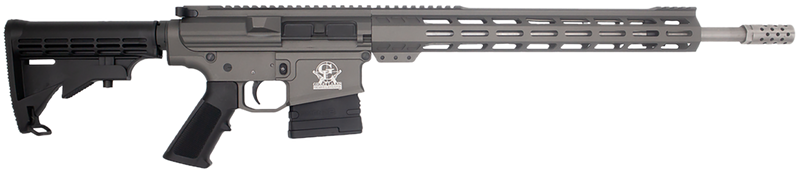Semi-auto AR-10 platform rifle chambered in .308 Win with an 18" stainless steel threaded barrel and 1:10 twist rate. Features a billet aluminum receiver, 15.25" M-LOK rail, Picatinny optic-ready system, adjustable mil-spec synthetic stock, and weighs 8.25 lbs. Finished in tungsten cerakote with mil-spec polymer grip.