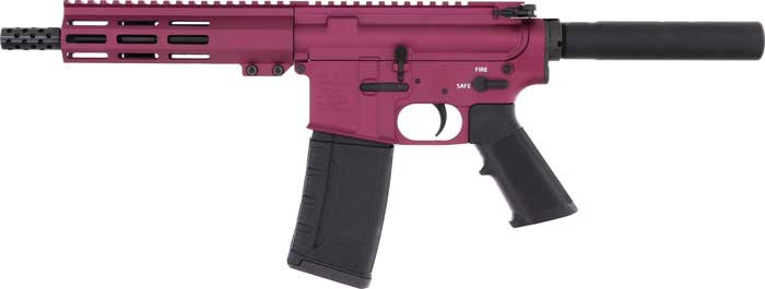 Semi-auto AR15 pistol chambered in 223 Wylde with a 7.5" nitride barrel. Features a black cherry finish and is built on the AR pistol platform for compact handling and maneuverability.