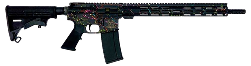 Semi-automatic AR-15 chambered in .223 Wylde with a 16-inch stainless steel heavy barrel (HBAR) featuring 1:8 twist and 1/2 x 28 threaded muzzle. Includes 15.25-inch full picatinny rail handguard, M4 feed ramps, carbine gas system, and one 30-round magazine with muzzle brake.