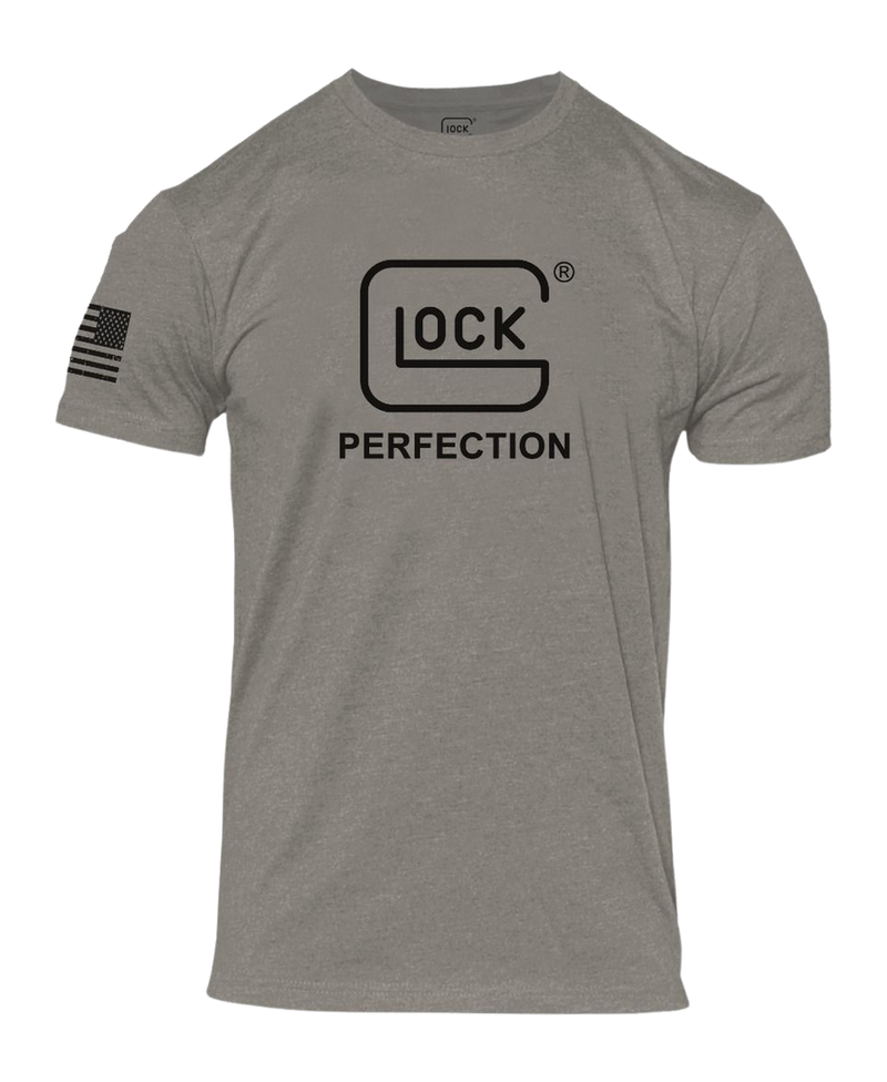 Official Glock branded t-shirt featuring the iconic 'Perfection' logo. Made from quality cotton material, this casual wear shirt is sized 3XL and suitable for everyday wear by Glock enthusiasts and firearm owners.