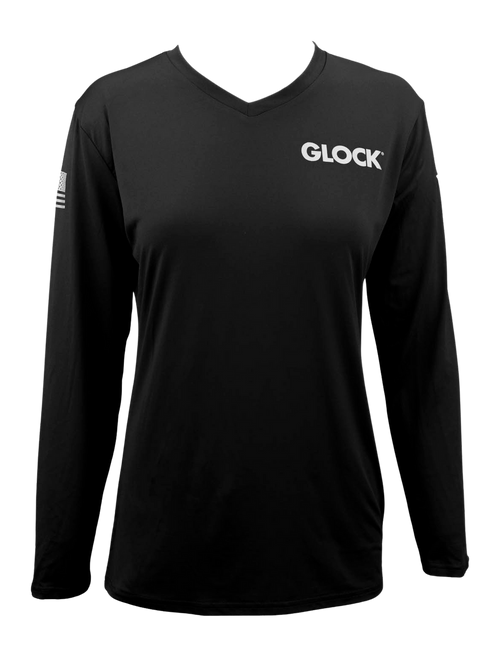 Ladies performance shirt designed for shooters and outdoor enthusiasts. Features moisture-wicking performance fabric for comfort during active use. Available in black, size 2XL.