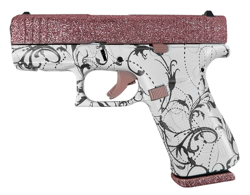 Glock 43X MOS 9mm 3.41" 10rd Pistol, Rose Gold Glitter/Black & White Paisley - PX4350204NRGP
