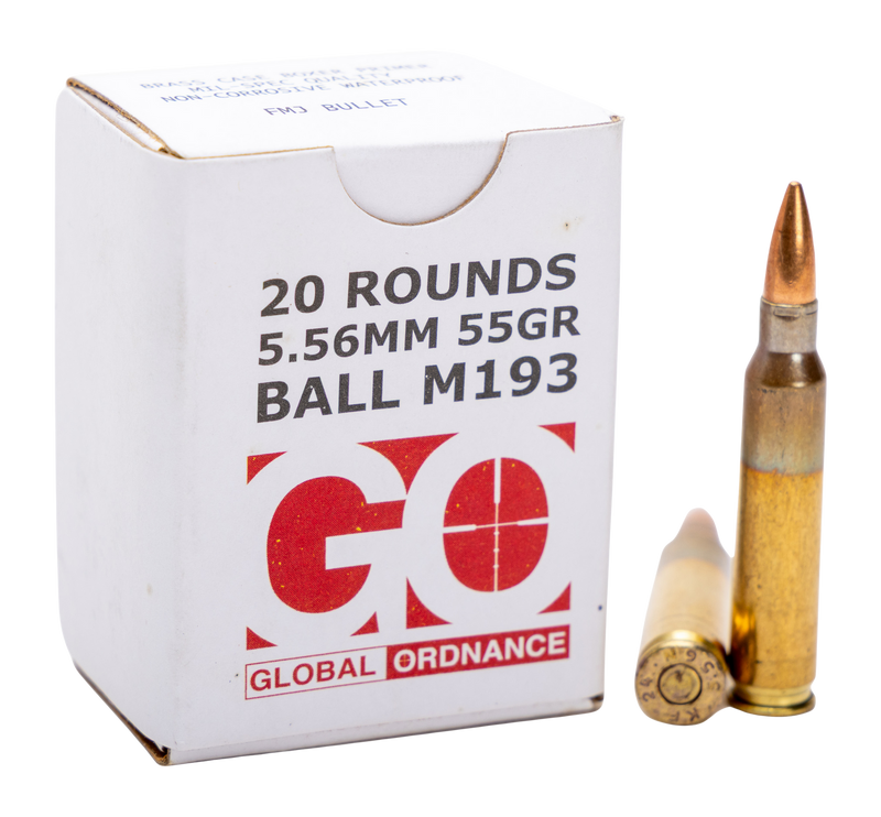 Global Ordnance 5.56x45mm M193 55gr FMJ Rifle Ammunition 20rd Box - GO850003223346