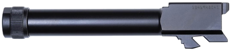 OEM Glock threaded barrel for Gen 5 G19, G19X, and G45 pistols in 9mm Luger. Features 1/2x28 right-hand threads with included thread protector and black steel construction for direct drop-in installation.