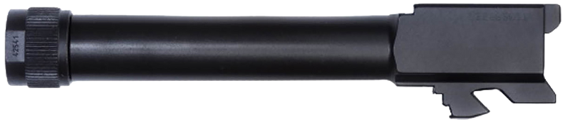OEM Glock threaded barrel for Glock 19 Gen 3 and Gen 4 pistols chambered in 9mm Luger. Features M1/2x28 right-hand threads, black steel finish, and includes a metal thread protector. Direct replacement barrel requiring no gunsmithing.