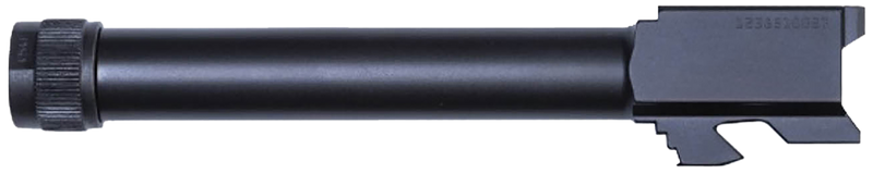 Factory Glock threaded barrel designed for the G17 Gen4 9mm Luger pistol with 1/2-28 RH thread pitch for muzzle device compatibility. The barrel is constructed of black steel and includes a thread protector. Approximately 4.1" width with 8.4" length, suitable for both compact carry and tactical applications.