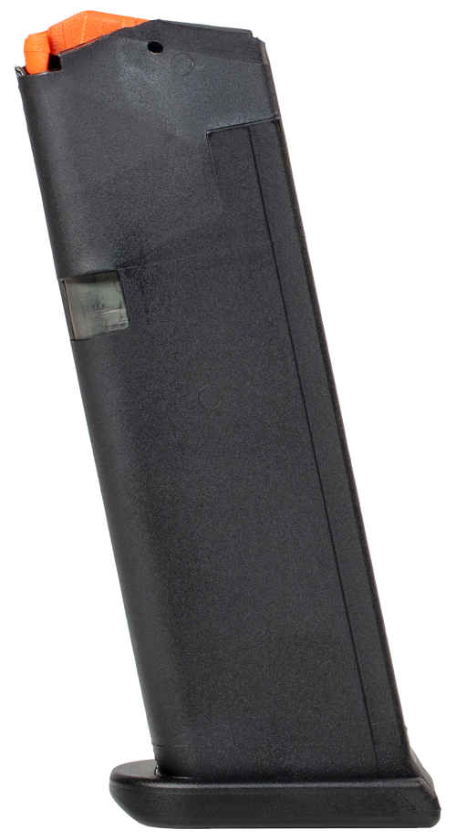 Factory original Glock OEM magazine chambered in .40 S&W with 10-round capacity for Glock 23 pistols. Features hardened steel insert encased in high-tech black polymer construction that resists deformation and provides reliable feeding. Magazine may require a break-in period before the final round seats easily when new.