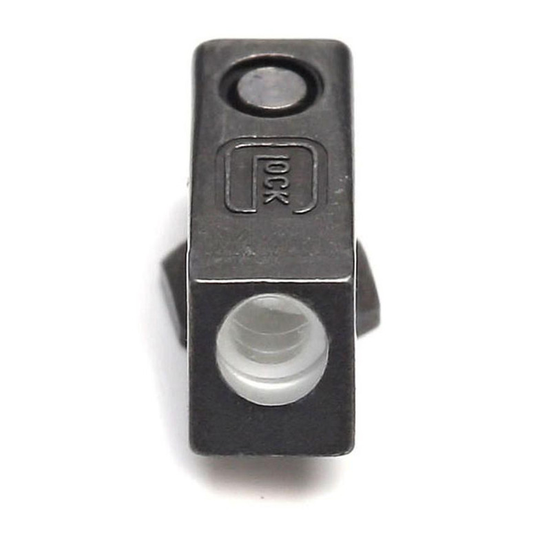 Glock front night sight featuring contrasting tritium inserts for quick and accurate target alignment in all light conditions. This sight is compatible with all Glock pistol models and uses a screw-on mounting system.