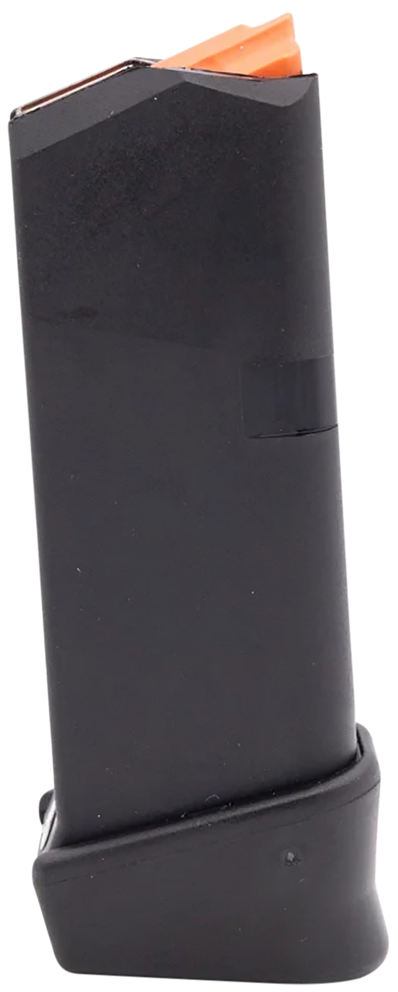 Glock OEM magazine for the G26 Gen5 chambered in 9mm Luger with 12-round capacity. Constructed with a hardened steel insert encased in high-tech polymer with an orange follower, designed for reliable feeding and durability. Factory drop-free magazine with proven Glock reliability.