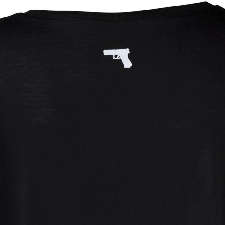 Glock Girl relaxed-fit v-neck short sleeve shirt featuring Glock Girl logo on right hip and pistol silhouette on back nape. Made from 100% Airlume combed and ring-spun cotton with pre-shrunk construction and side-seam design for added structure.