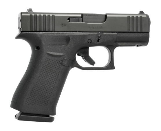The Glock G43X is a striker-fired 9mm Luger semi-automatic pistol with a 3.41" barrel and 10+1 round capacity. Features a black nDLC serrated steel slide, black polymer frame with Picatinny rail, ambidextrous controls, and fixed sights. The slim sub-compact frame design makes it ideal for concealed carry.