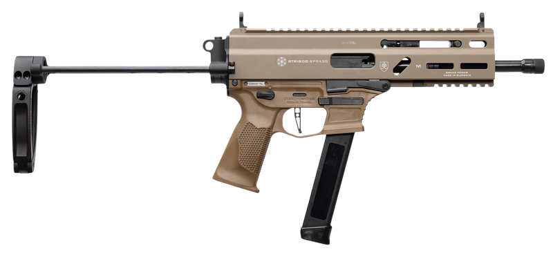 Grand Power Stribog SP9A3G 9mm 8" 33+1 Pistol, Black - 197892030007