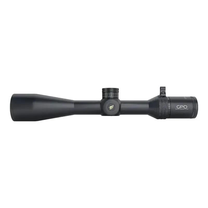 The GPO Centuri 2.5-15x50i is a variable power riflescope with 2.5-15x magnification and a 50mm objective lens featuring a 30mm main tube for broad adjustment range. It includes the G4i illuminated reticle with exposed locking ZeroStop turrets, side focus parallax adjustment, and fast focus eyepiece, making it suitable for diverse shooting applications from 10 yards to infinity.