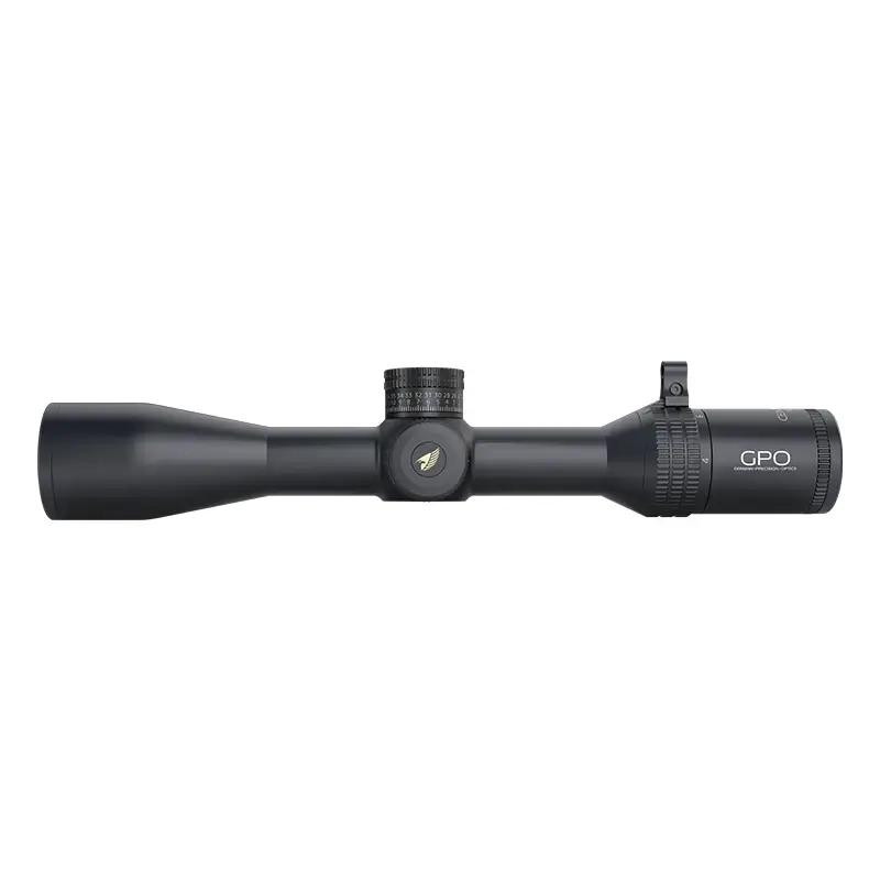 The GPO Centuri 4-16x44i is a second focal plane riflescope with a 30mm tube and variable 4-16x magnification, offering 90 inches of windage and elevation adjustment for precision shooting. It features an illuminated G4i reticle, multi-coated optics for clarity, and a ZeroStop turret system with a throw lever for quick magnification changes. With 3.5 inches of eye relief, parallax adjustment from 10 yards to infinity, and a 1/4-inch click adjustment at 100 yards, this scope is designed for hunters and shooters seeking reliable field performance.