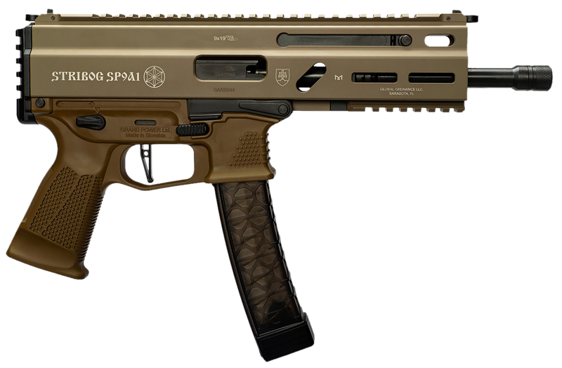 Grand Power Stribog SP9A1 9mm 8" 30+1rd Pistol, Flat Dark Earth - 197892004763