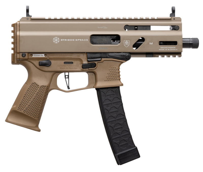 Grand Power Stribog SP9A3S 9mm 5" 30+1 Pistol, Flat Dark Earth - 197892004787