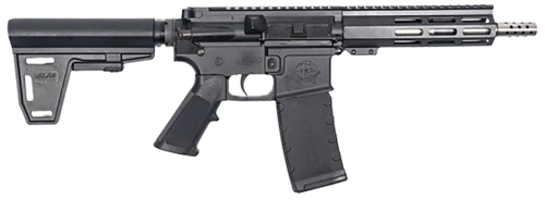 Great Lakes Firearms AR-15 pistol chambered in .223 Wylde with a 7.5" stainless steel barrel and semi-automatic action. Features a billet aluminum lower receiver, forged aluminum upper, M-LOK handguard with Picatinny rail, mil-spec trigger, and adjustable pistol brace. Ships with 30+1 round capacity magazines and weighs approximately 5 lbs.