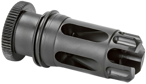 The Griffin Armament Dual-Lok Flash Comp is a muzzle brake designed for 5.56/.223 and 7.62/.308 rifles. It features a 5/8"x24 threaded interface and is constructed from 17-4 PH stainless steel with QPQ black nitride finish for durability. The device utilizes Griffin's Dual-Lok technology for secure mounting and flash reduction.