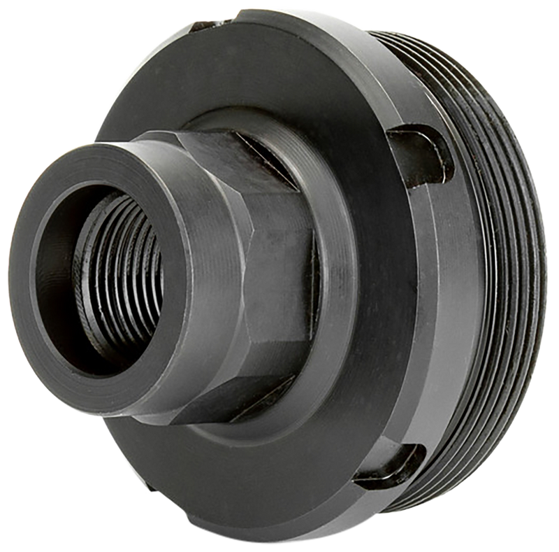 This is a thread adapter designed for attaching suppressors and other muzzle devices to firearms with 5/8"x24 threaded barrels. Manufactured from 17-4 stainless steel with a durable black nitride finish, it measures 5.6" in length and provides a secure connection for compatible muzzle devices.