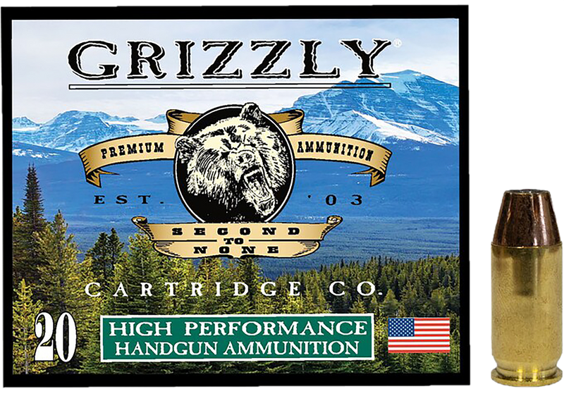 Grizzly Ammo GC45A2 is a 45 ACP centerfire handgun round featuring a 230-grain jacketed hollow point projectile with a muzzle velocity of 1000 fps and muzzle energy of 511 ft-lbs. Each box contains 20 rounds, with 10 boxes per case for convenient bulk purchasing.