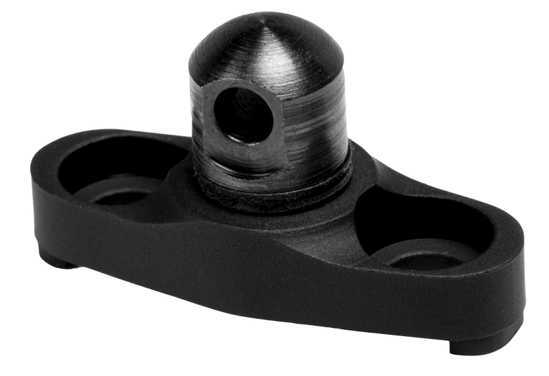 This GrovTec M-LOK stud mount adapter is machined from 6061 aluminum with Type III hard anodize finish and features a steel stud with black oxide finish. It is designed to accommodate locking swivels and includes all necessary mounting hardware for M-LOK compatible firearms and accessories.