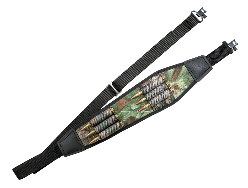 This padded rifle sling features Realtree Xtra camouflage pattern and is designed for comfortable carry and shooting support. The sling includes 6 rifle cartridge loops for ammunition storage and has an adjustable length to fit various shooter preferences and body types. Width of 3.2 inches provides padded support for extended wear.