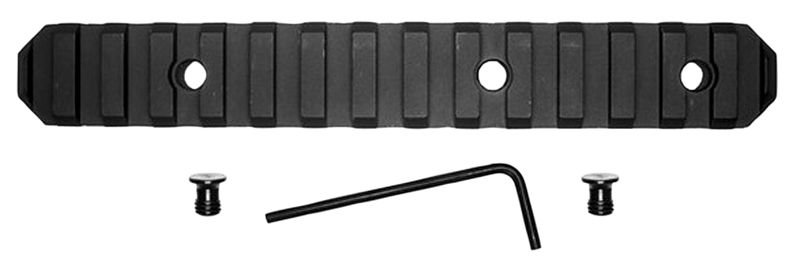 This GrovTec rail section is a 6-inch KeyMod-compatible accessory rail designed for mounting tactical accessories on KeyMod-equipped handguards and forends. Constructed from aluminum with black anodized finish, it features 15 slots for secure attachment of compatible components.