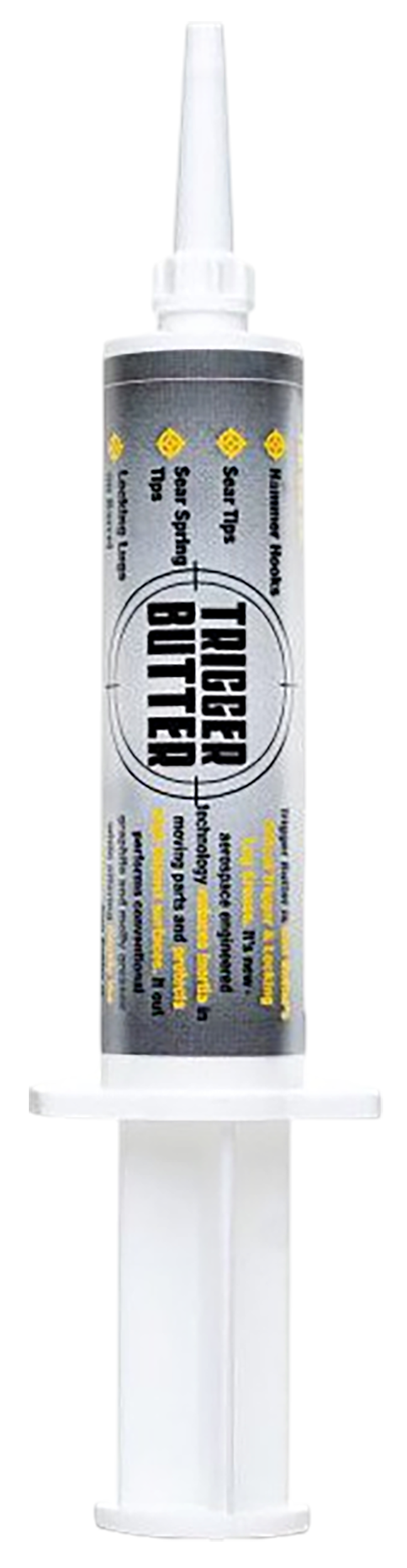 Gun Butter Trigger Grease is a synthetic lubricant formulated for firearm maintenance and trigger mechanisms. Packaged in a convenient 15cc syringe applicator for precise application. This non-toxic grease is designed for gun care and cleaning applications.