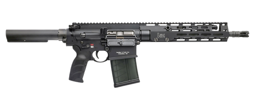 Semi-automatic AR-platform rifle chambered in 7.62x51mm NATO/.308 Winchester with a 16.5" cold hammer-forged threaded barrel and short-stroke gas piston operating system. Features fully ambidextrous controls, M-LOK free-float handguard, adjustable gas block, HK416 slimline furniture, and collapsible synthetic stock. Ships with one 20-round magazine and weighs 9.84 lbs.