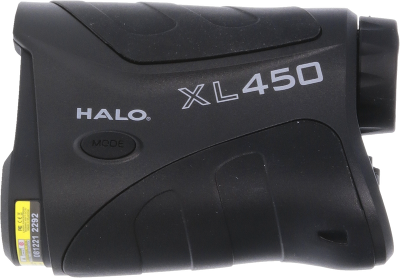 The Halo XL450 is a 6x magnification rangefinder with a 22mm objective lens and water-resistant construction. It delivers a maximum range of 450 yards to reflective targets and features Angle Intelligence technology for accurate horizontal distance calculations across varying terrain. The unit includes scan mode for continuous ranging and is equipped with a CR2 battery.