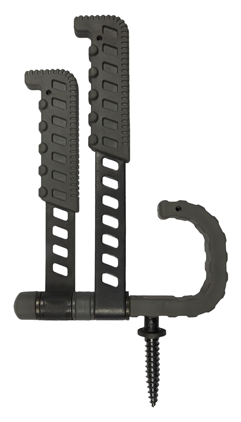 The Hawk Tactical Trio Tree Hook is a treestand accessory designed to securely hold and organize hunting gear while in the tree. Measuring 11.0" in length with a 5.5" width, this black hook provides a reliable attachment point for accessories and equipment. The hybrid design makes it compatible with various treestand setups for convenient access to essential hunting tools.