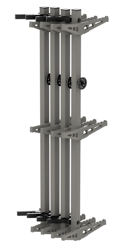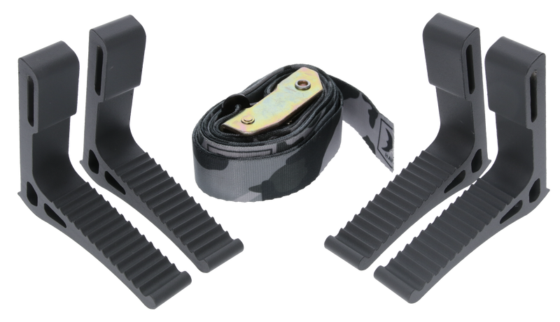 The Hawk Monkey Bar Steps are aluminum climbing aids designed for tree stand access and hunting platform setup. This 4-pack includes durable black aluminum steps measuring 5.5" x 4.7" x 1.8" for secure footing. Ideal for hunters needing reliable step-ups when accessing elevated hunting positions.